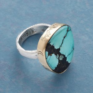 Sapphires embraced by bubbly bezels of 14kt gold encircle the finger. Sundance exclusive. Whole sizes 5-9.