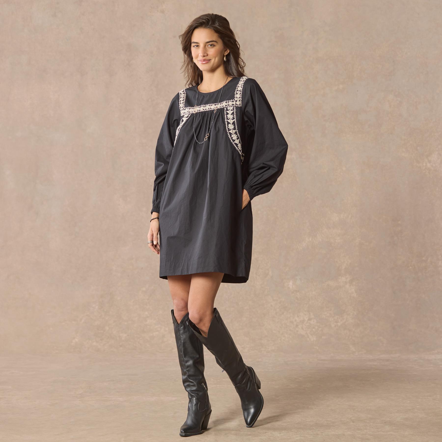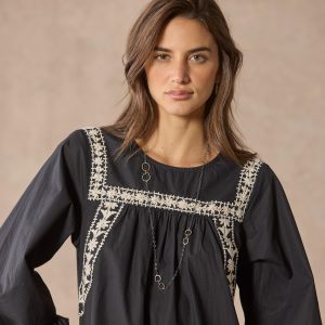 Easy to wear and bedecked with hand embroidery. this dress will quickly become a wardrobe staple. Organic cotton. Dry clean. Imported. Sizes XS (0–2). S (4–6). M (8–10). L (12–14). XL (16–18). Approx. 36l.