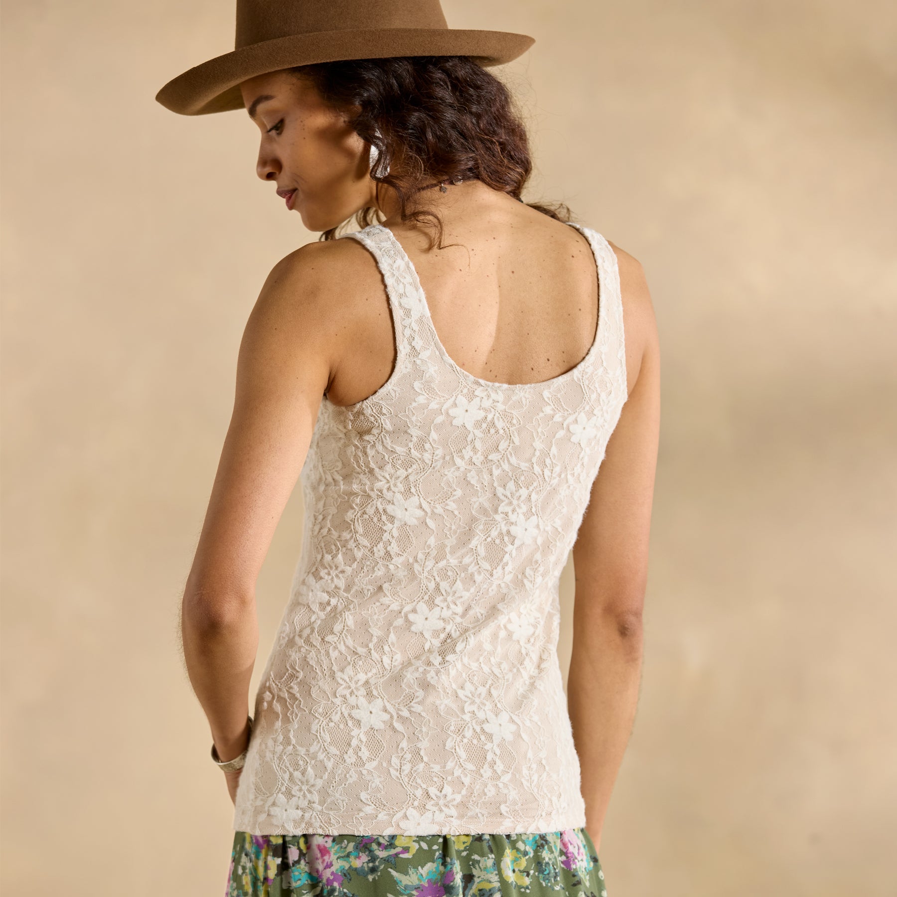 Bold and feminine. our Shae Lace Tank features allover lace details lined in comfortable jersey. with a scoop neck front and back. Nylon/spandex/rayon/. Hand wash. Imported. Exclusive. Sizes XS (0??). S (4??). M (8??0). L (12??4). XL (16??8). XXL (20??2). Approx. 24l.
