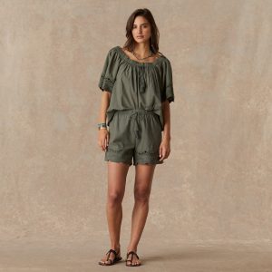 Cool and relaxed. these shorts match our Stevie top and have an elastic waist with tie. cut-out detail and embroidery. Cotton. Machine wash. Imported. Sizes XS (0-2). S (4-6). M (8-10). L (12-14). XL (16-18). XXL (20-22). 5 inseam. 13.5 leg opening.